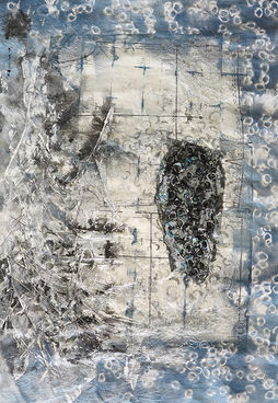 Sculptural elements flow freely, overlapping, echoing and retreating. These works combine personal memories and a long connection to the seashore and the ocean with an equally long connection to fibres, textiles and stitch.